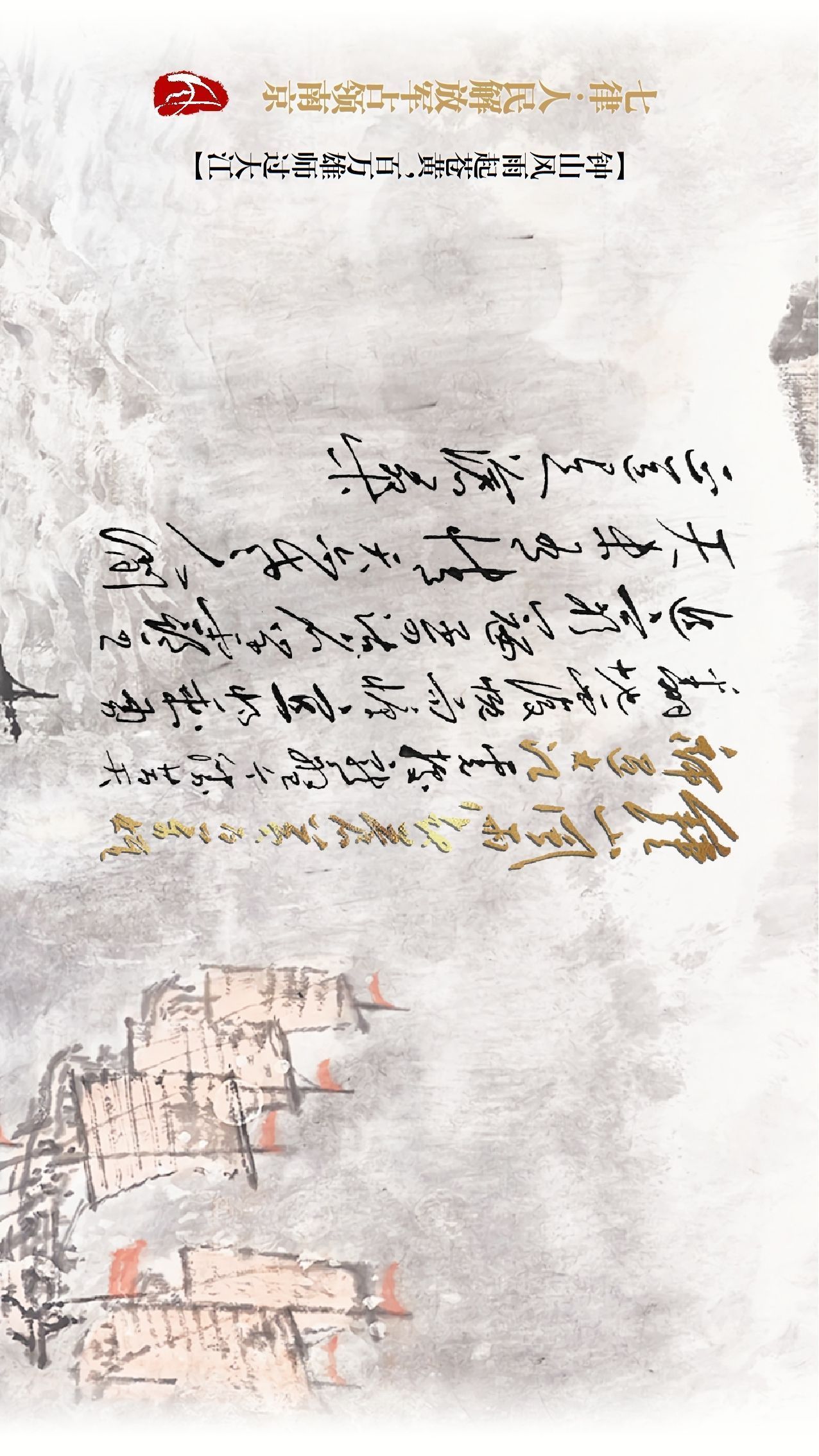 画面来源:傅抱石《风展红旗如画》、傅抱石《清平乐·六盘山》、李可染《百万雄师过大江》、傅抱石《萧瑟秋风今又是,换了人间》、陆俨少《水调歌头》、吴作人《战地黄花分外香》、应野平《风景这边独好》、王成喜《报春图》、傅抱石《冬云》、杨之光《雪里行军情更迫》、傅抱石《长征》、李可染《昆仑雪山图》、傅抱石和关山月《江山如此多娇》、傅抱石《沁园春·长沙》、李可染《雄关漫道·苍山如海》、李可染《韶山·革命圣地毛主席旧居》、钱松喦《井冈山颂》