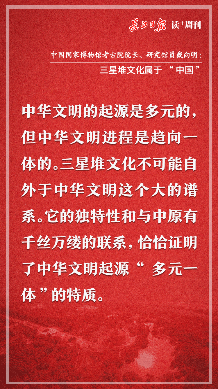 读+:近日三星堆考古发掘最新成果引起公众的关注,有关三星堆文化起源的问题也引发讨论,其中有人认为三星堆出土文物与中国其他地区的同时代出土文物形制样式有很大差别,它可能并不属于中华文明的早期文明谱系。对此,您怎么看?
