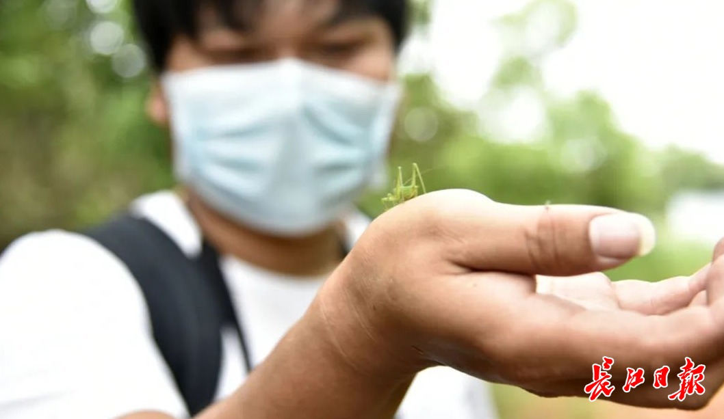 螽斯不情愿地在手掌乱窜,以期逃脱。长江日报记者戴红兵 摄