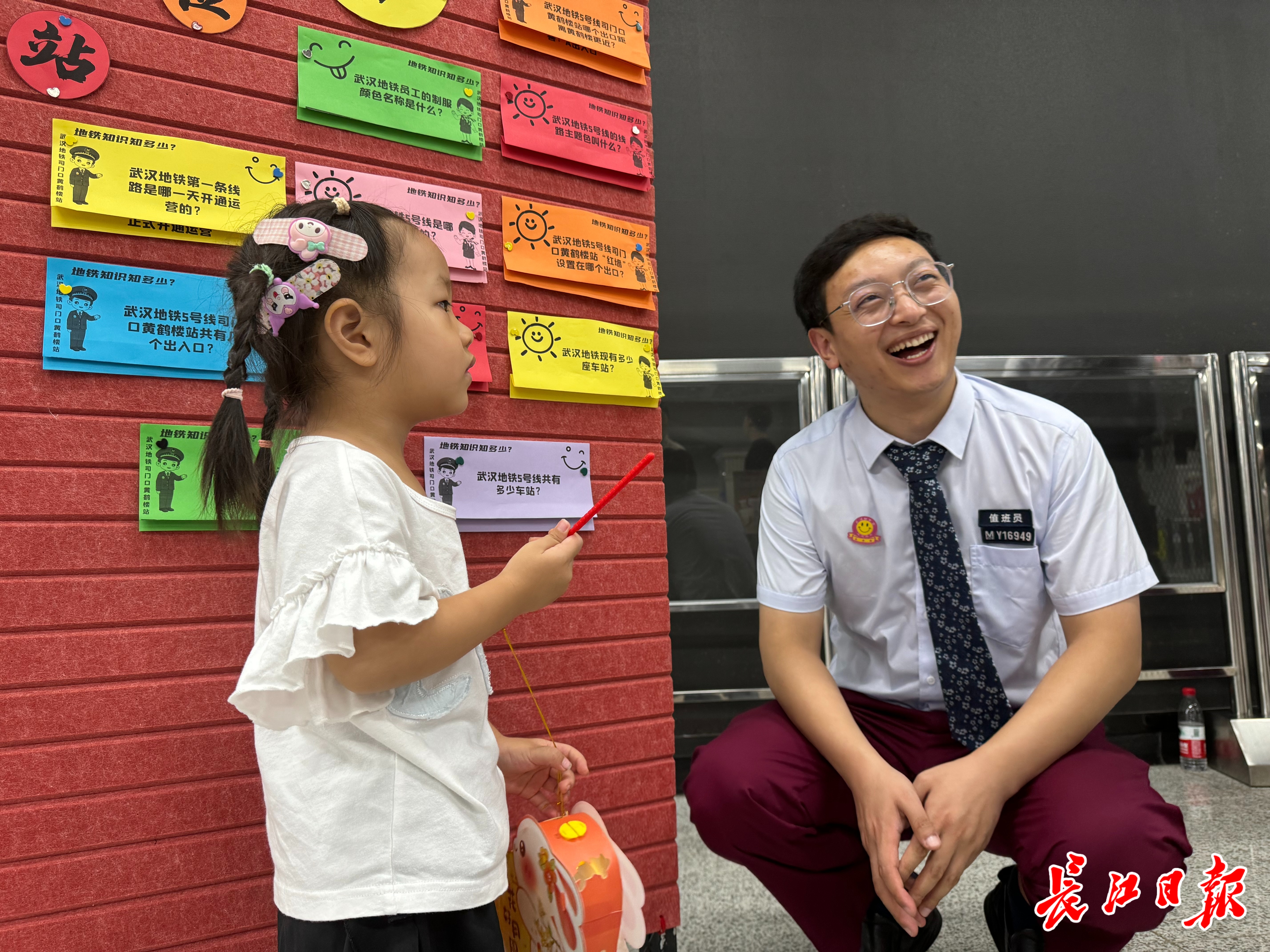 地铁5号线司门口黄鹤楼站,工作人员正在邀请小朋友和家长参加中秋活动。 记者陶常宁 摄