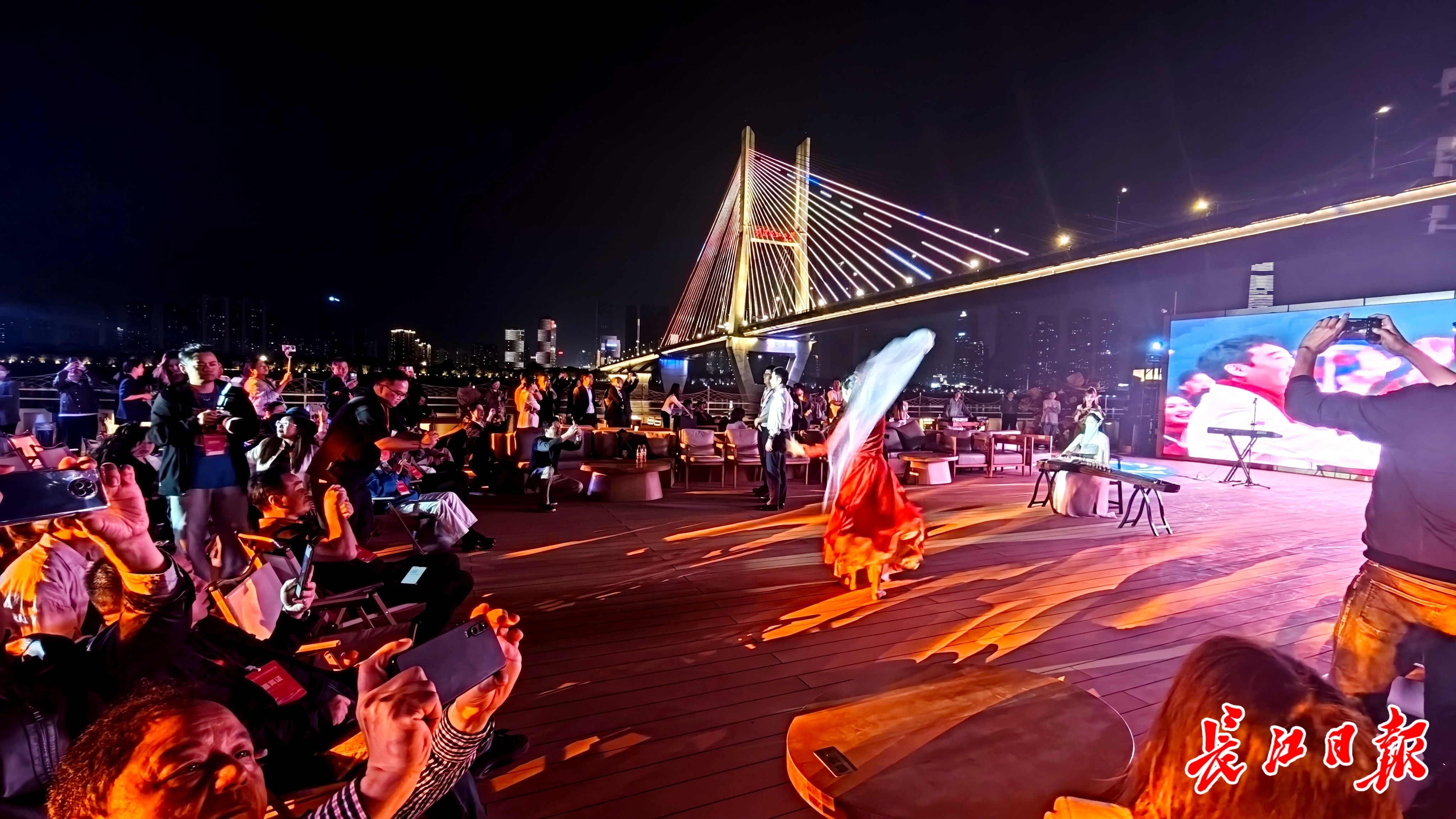 长江日报大武汉客户端4月25日讯 在古琴号上看文艺演出、赏长江夜景、品长江灯光秀,多位来自外地的旅行社代表表示,“太震撼了,回去后就要规划特色线路,带更多的游客来武汉。”4月24日晚,“武汉之夜”文旅推介会在长江“古琴号”游船上盛大举行。来自2025湖北文化旅游发展大会的300余名嘉宾齐聚一堂,在璀璨江景中感受武汉的历史底蕴与现代活力。