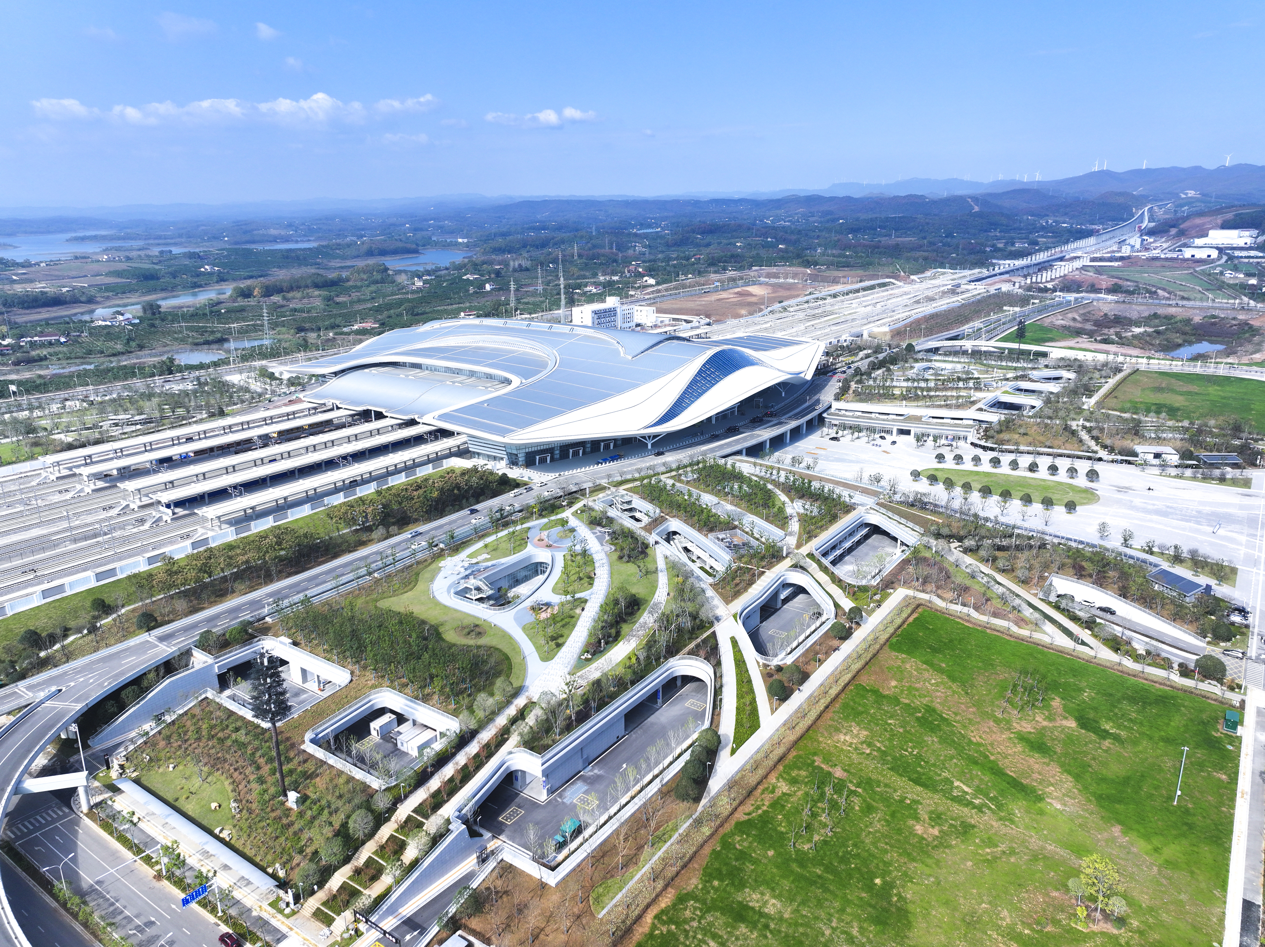 襄阳东站航拍照片。 通讯员袁广益 摄