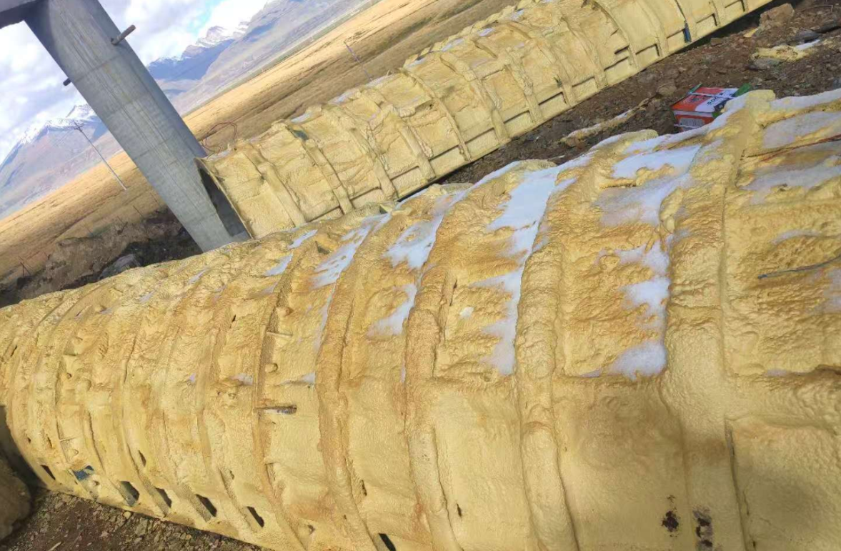 针对冻土路基难题,中交二航局项目团队采用"热棒保温+碎石通风"复合技术,在路基埋设上千根密闭金属热棒,建设者将上千根金属热棒插入路基。这些密闭热棒利用氨气蒸发冷凝原理,主动导出地热,宛如为公路安装“空调系统”。
