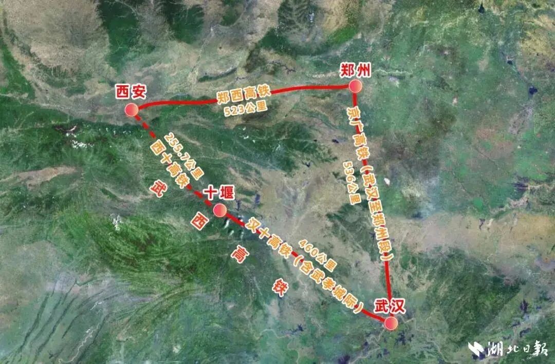 以往,西安至武汉,先走郑西高铁,从西安到郑州线路长523公里,然后走京广高铁(郑州至武汉段),线路长度是536公里,全程总长1059公里。如西十高铁开通,西安至武汉线路总长将为716公里。将减少343公里。
