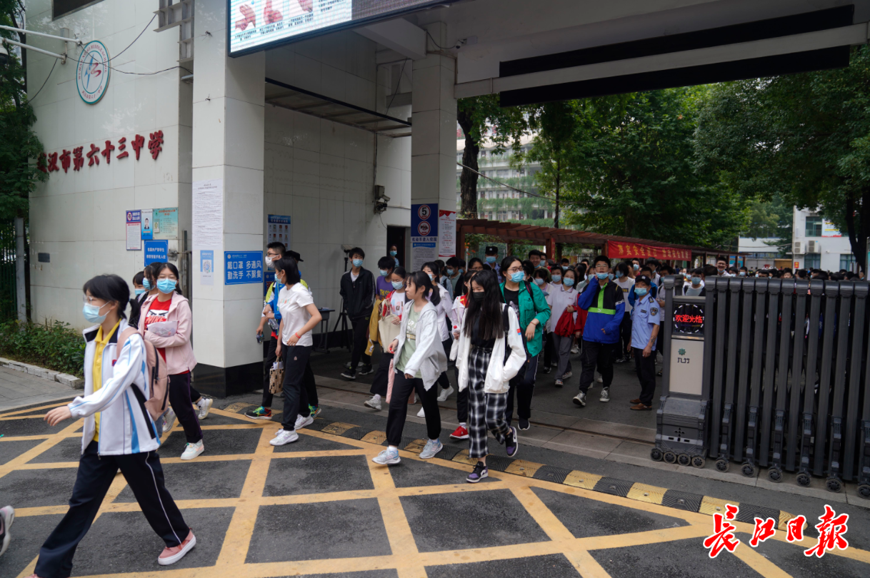 中考首场考试结束,考生走出武汉市六十三中考点。记者彭年 摄