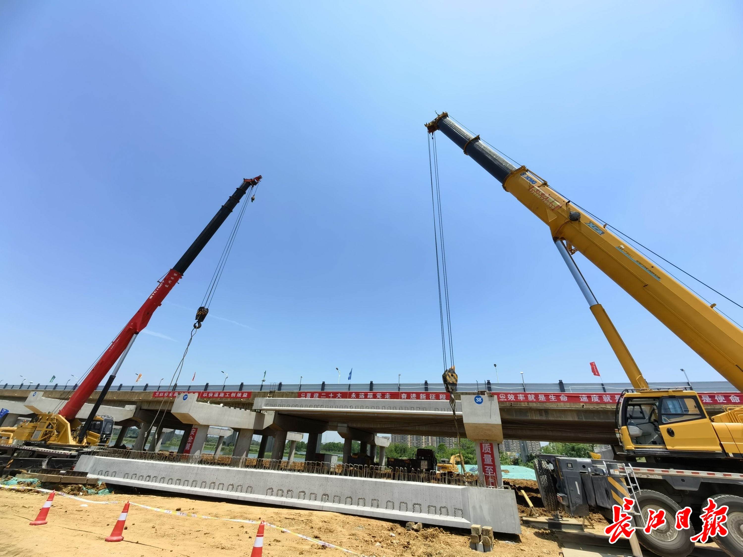 长江日报大武汉客户端6月16日讯 16日上午,伴随短咀里湖桥改造工程首片梁成功吊装到位,标志着这条武鄂“硬联通”的重要工程全面进入桥梁上部结构施工。未来完成后将大幅提升两地的通行能力,有力促进武鄂同城化“交通同网”和区域经济发展。