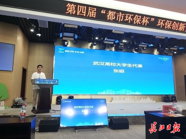 我是来自于武汉大学新闻传播学院的大三学生张昭,很荣幸作为大学生代表参加第四届“都市环保杯”环保创新大赛启动仪式。