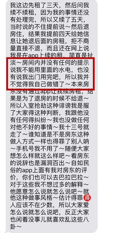 同时,房东的帖子中称王可恶意浪费水电,叶珈睿认为法律上对此并无明文规定,只是一个道德层面的问题,而损毁财物则明确构成了民事侵权。