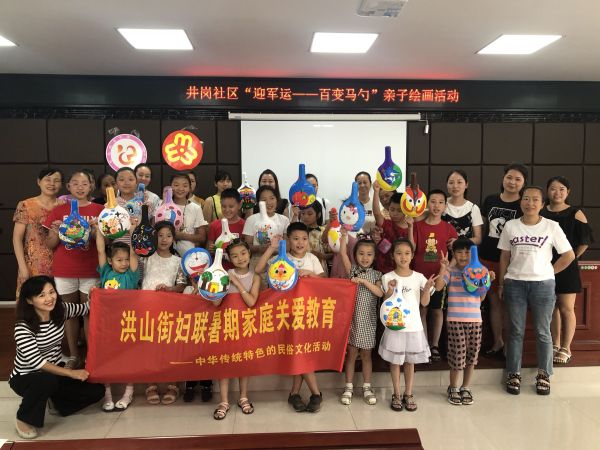 8月27日上午,井岗社区邀请老师到家长学校开展“迎军运—百变马勺”亲子绘画活动,共有20组亲子家庭参加。(邹惠芳)