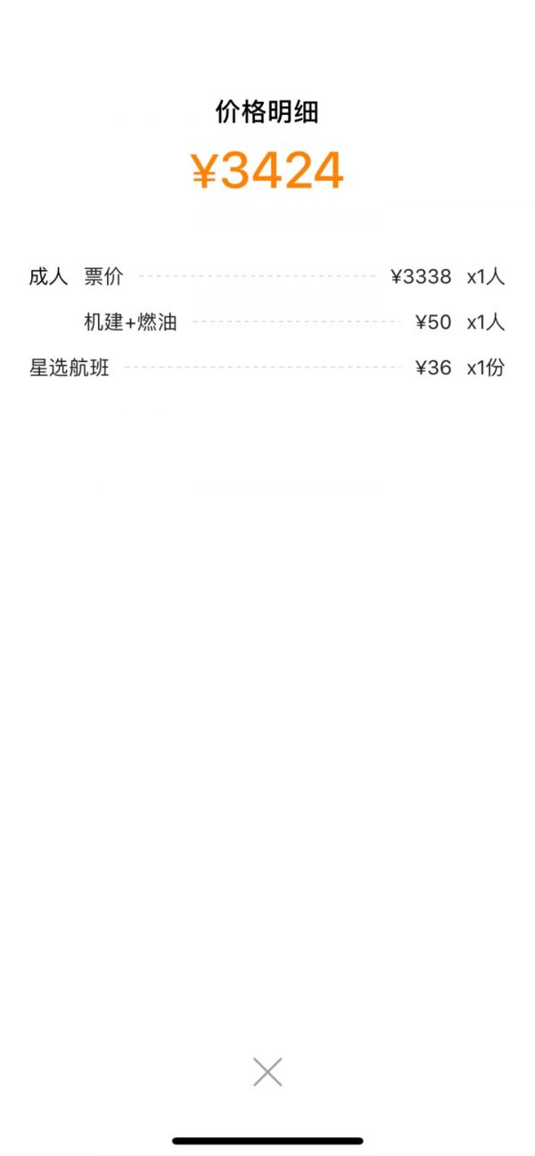 根据去哪儿网页面详情显示,该订单包括了3338元的票价、50元的机建燃油费,以及林女士忘记取消勾选的36元“星选航班”服务。