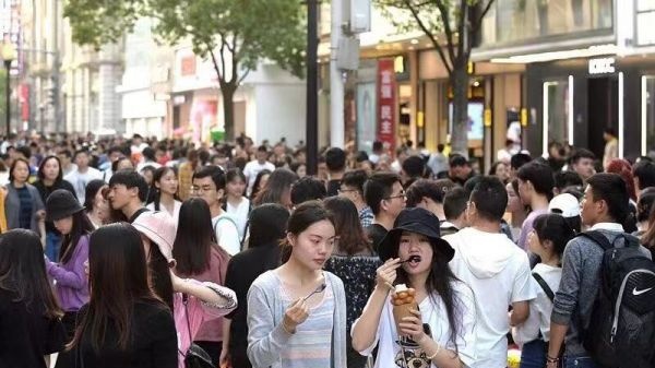 长江日报-长江网10月2日讯 10月2日,国庆黄金周长假进入第二天,汉口江汉路步行街人如潮涌,不少游人拖着行礼箱来此打卡,边逛街边品尝武汉美食,其中不乏外籍人士的身影。