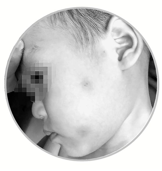 登登(化名)脸上和身上都是红疹。钱江晚报 图