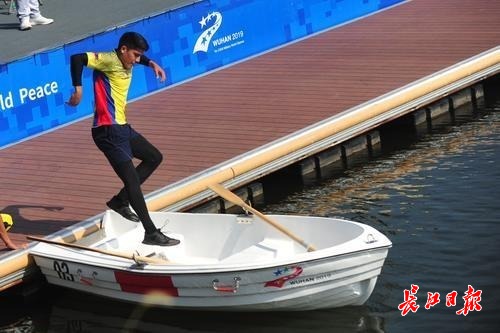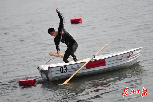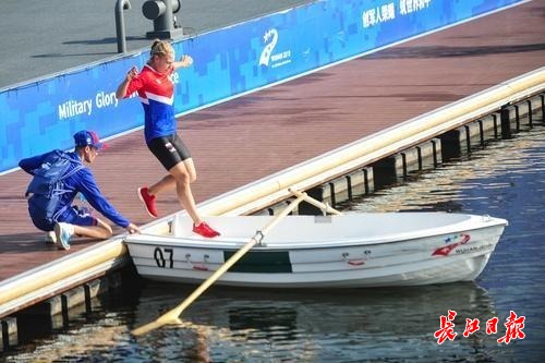 长江日报-长江网10月24日讯 24日上午9时,第七届军运会海军五项——航海技术开赛,该项目是军运会比赛中最具海军特色项目。收缆绳,船只机动,水上作业等都是海军军官的必备技能。八一海军五项队最终包揽女子前三名、男子前五名。(记者彭年 摄影报道)