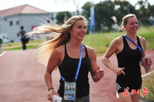 外籍运动员在场外热身