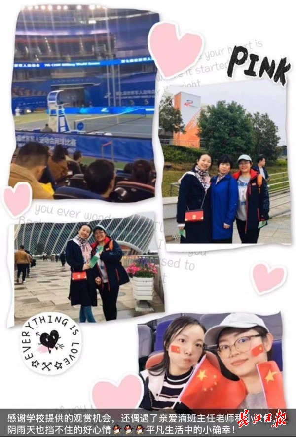 不仅是小学同学,李诚还在现场碰到了自己的小学班主任,大家都希望抓住在家门口看国际比赛的机会。李诚把与同学、老师的合影发上朋友圈,朋友纷纷留言,羡慕她有机会在现场观赛。