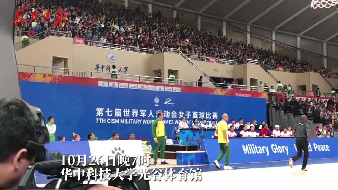 长江日报-长江网10月26日讯 2019年10月26日晚,军运会中国女篮对阵巴西女篮冠军争夺赛在华中科技大学体育馆拉开战幕,最终中八一女篮93比65大比分战胜巴西队,夺得军运会女篮冠军。 (记者高勇摄)