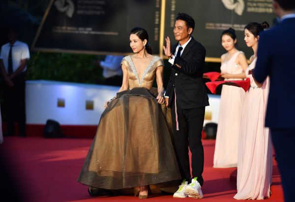 ↑12月1日,演员李若彤、任达华亮相电影节红毯仪式。