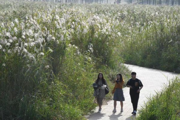 自入秋以来,芦荻陆续迎江绽放。长达6公里的雪白苇荡一片生机盎然,吸引无数市民游客驻足观赏,合影留念。