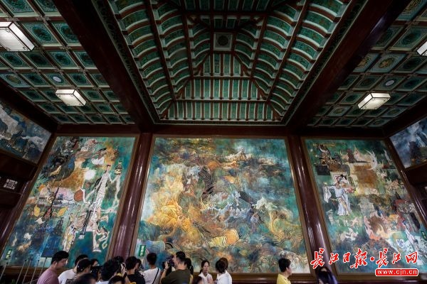 此次除了宋、清时期黄鹤楼复原件更新,黄鹤楼二楼布局也焕然一新。向欣然说,黄鹤楼二楼经过重新设计,将变成黄鹤楼建筑历史的“博物馆”。设计中既保留了墙面壁画,表现黄鹤楼的历史变迁,又展示有古代黄鹤楼的画作与历史照片,反映其艺术价值与真实面貌,便于游客了解黄鹤楼建筑历史的演变与成就。