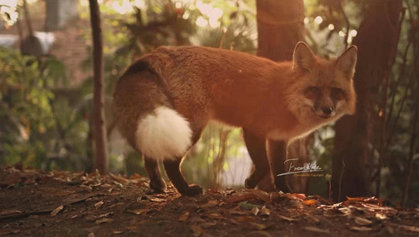 据李先生和小海提供的原视频显示,狐狸的一个回眸镜头与网传视频高度相似。但在这则视频中,狐狸毛色是黄色。