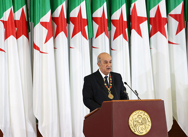 12月19日,在阿尔及利亚首都阿尔及尔,阿尔及利亚新任总统阿卜杜勒-马吉德·特本在总统就职典礼上讲话。 新华社发