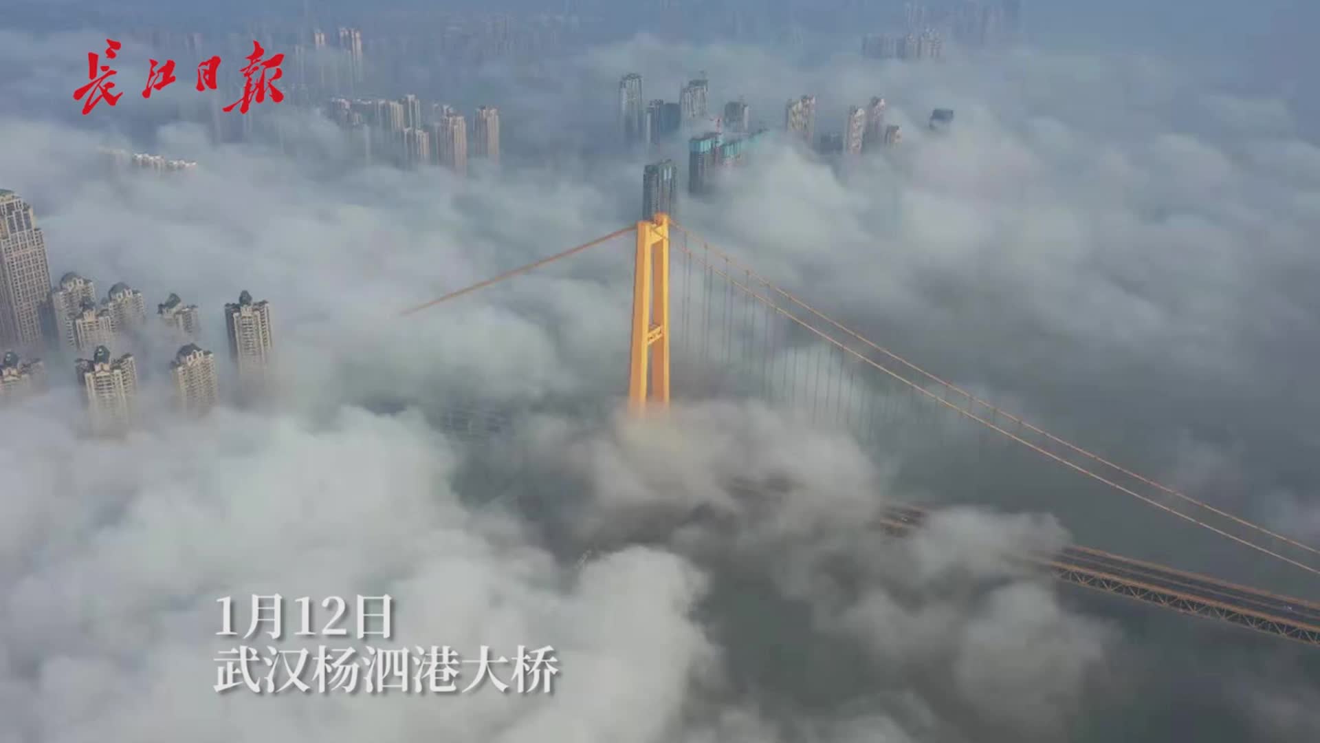 长江日报-长江网1月12日讯 2020年1月12日上午,大雾弥漫。在汉口江滩,位于沿江大道三阳路口的一幢高层建筑在雾中若隐若现。随着时间的推移,当一抹阳光穿透厚厚的浓雾照射到大楼之上,整座大楼似乎瞬间被阳光点燃。在汉阳江滩,杨泗港大桥在雾气弥漫中若隐若现。汉口北市场的建筑、东湖欢乐大道一带也都被大雾笼罩。