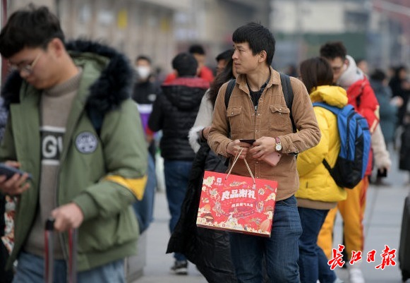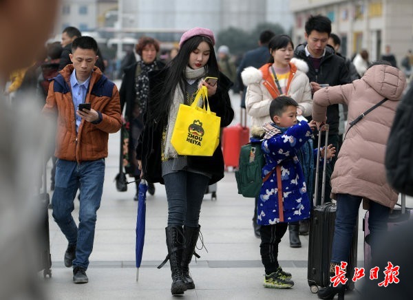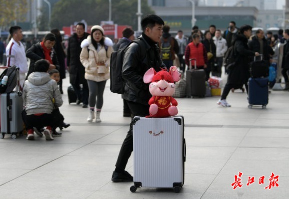 长江日报-长江网1月18日讯 1月18日,是中国南方农历小年。在武汉汉口火车站,南来北往的旅客带着天南海北的特产步伐匆匆,纷纷踏上归乡的旅途。春节将至,平平安安回家团聚是每个中国人的心愿。不论路有多远,带你回家就好。(记者史伟 摄影报道)