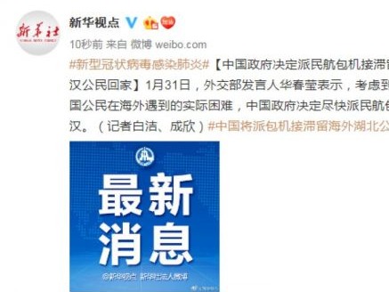 1月31日,为解决近日湖北特别是武汉籍中国游客在日本遇到的实际困难,中国驻日本大使馆协同中国驻东京旅游办事处组成联合工作组,商请春秋航空公司提供包机运送滞留游客返乡。春秋航空公司紧急开通2月1日02:00-05:50东京羽田至武汉9C6152号航班,作为滞留日本的中国湖北籍游客的包机。