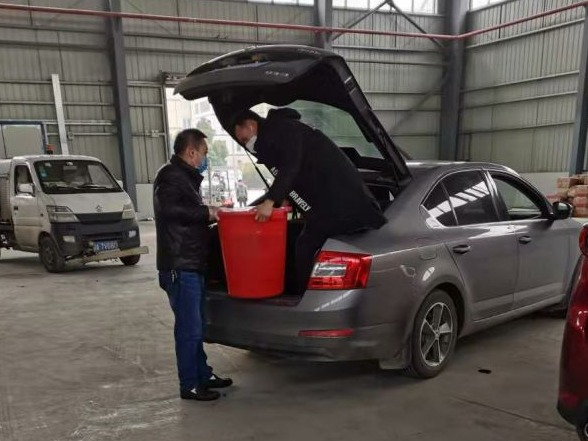 小区防疫卫士为年老体弱有需求居民送菜上门服务。