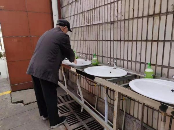 小区防疫卫士对进入小区居民提供酒精消毒服务。