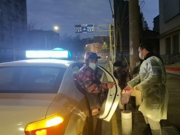 早上10点出门,大女儿王莹搀扶着她来到社区,工作人员现场给她测量体温后,早已等候多时的社区专车司机将她扶上车。上车前,司机拿出消毒水,对车内和田新民全身做了消毒,连鞋底都没有漏掉,这才出发前往医院。
