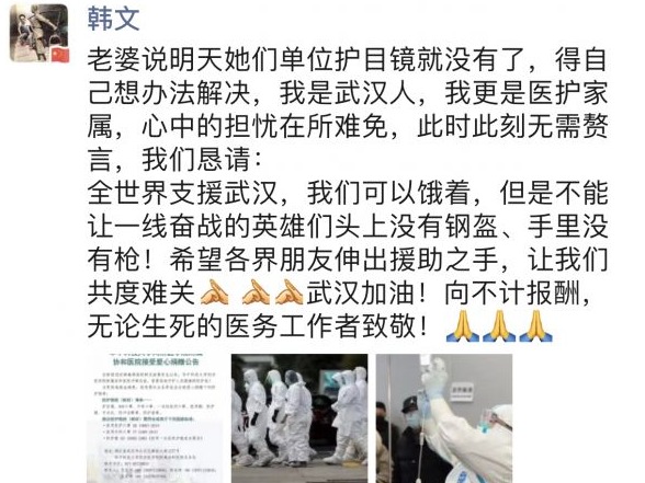 刘斌锋在朋友圈中说:这是来自抗疫一线的一面特殊而饱含深情的锦旗!汉阳医院护士小姐姐向驻守民警的真心告白和慰问,你们的关心是对我们最大的鼓励,道声珍重,并肩战斗,武汉加油!