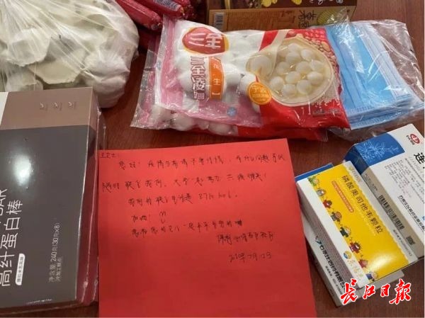 李人杰详细询问了王女士的症状,了解到近期她没有出门,也未与人接触,推测可能是恐慌导致不适。为了安抚她的紧张情绪,工作人员写了一封慰问信,告诉她不用惊慌,有需要时刻联系社区。大家还将带的零食、小吃、糖果拿出来,又将消毒物品、感冒消炎药、水饺等物资整理了满满两大袋,送到王女士家。第二天王女士就给李人杰打电话,说不用去做检查了,心里踏实多了。