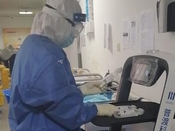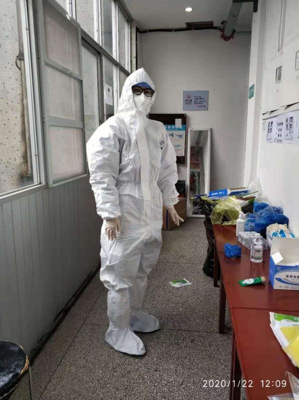 回到医院,得知自己所在的病区已经被紧急改造成隔离病房,改称呼吸内科五病区(简称呼五)。来不及喘气,我就跟同事们一起接受院感和医疗救治培训,赶紧将原科室病人转走。下午3点多,终于把所有病人转完。病区消毒后,发热病人陆陆续续转进了病房。那时候防护物资都没领全。