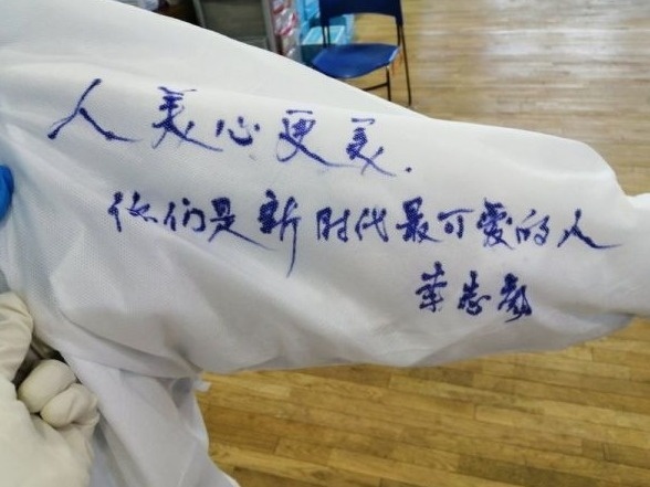 但小伙子们却对自己的工作充满了热情。队员张建国在工作日记中这样记录:由于不能带手机,我只能估计自己进舱的时间大概是2月13日凌晨2点左右。进舱前,领队给我们讲了很多工作中的小技巧,比如提醒我们穿着鞋套,走路时要抬脚走而不蹭着地上走,以减少磨损。还有护目镜起雾的问题,我觉得最有效果的是喷眼镜的防起雾喷雾,喷一层后擦干,效果特别好。今天上午天亮的时候,病人的早餐送到,包括盒饭、汤、粥等,我们就把这些用品往医院护士站送,再由护士分配给病人。想到病人们能及时吃到早餐,我也觉得非常温暖。
