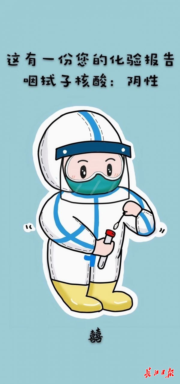 随后,曾妍又在上述9幅漫画的基础上作了改进,并组合成一幅长图,新添了黄鹤楼、鹦鹉洲、武大樱花和周黑鸭等武汉元素。在这组漫画上,曾妍表达了自己的心愿:“等你们都好起来,我也好想在武汉街头吃一碗正宗的武汉热干面!”