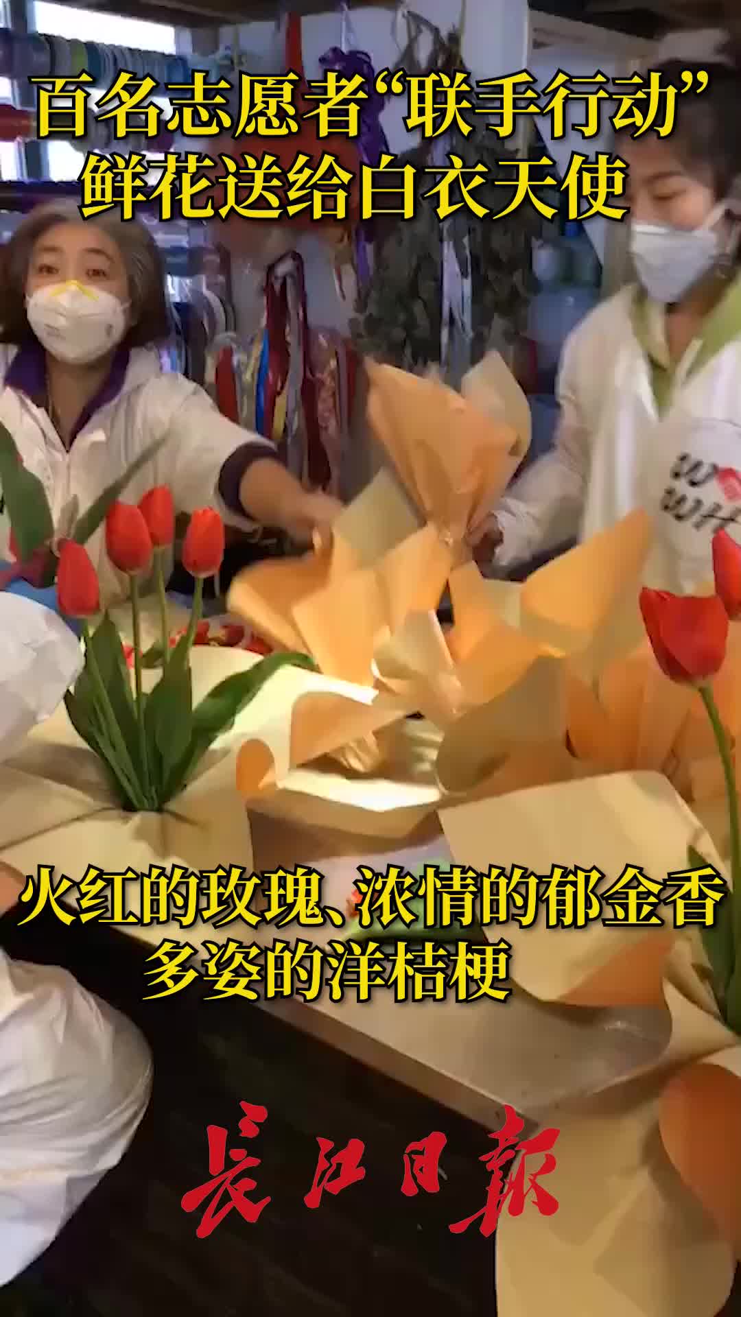 长江日报-长江网3月8日讯 (记者方历娇)火红的玫瑰、浓情的郁金香、多姿的洋桔梗……7日至8日,由“联手行动 守护武汉”公益平台发起“万朵鲜花满江城,献给最美逆行者”活动,上万朵鲜花由志愿者送往武汉十余支医疗援汉团队、方舱医院的一线医护人员,还有一部分玫瑰配送给各地市州战“疫”中涌现出来的“战地玫瑰”。