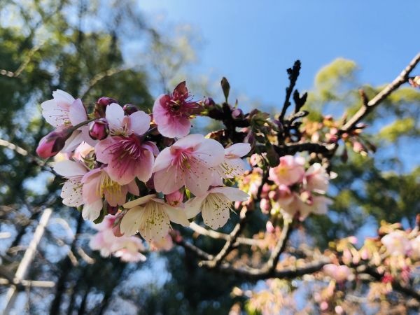 零星开放的樱花。