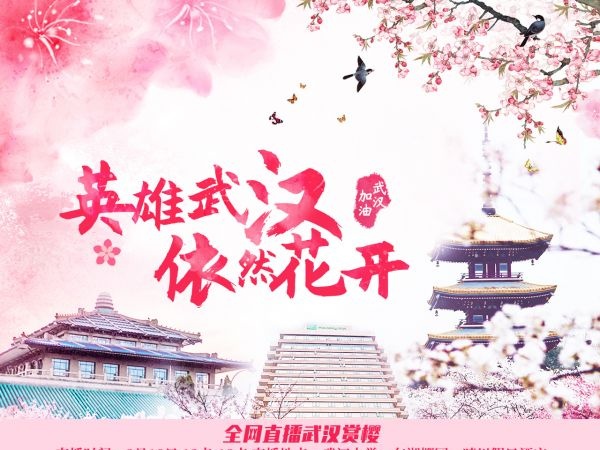 “英雄武汉·依然花开”线上赏樱直播活动,由武汉市委宣传部、武汉市文旅局联合学习强国、人民日报、中国日报、央视新闻、新华社、湖北电视台、武汉电视台、长江日报等近50家直播平台举行,聚焦武汉三大标志性赏樱点——武汉大学、东湖樱园、晴川假日酒店,既让网友身临其境地感受到“樱花之城”全景盛况,也表达了对驰援武汉的医护人员最诚挚的谢意。