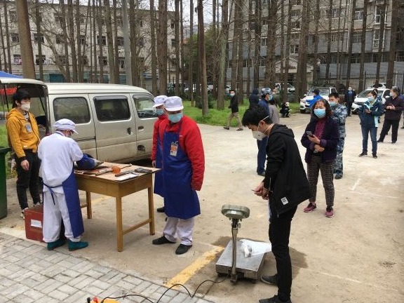 西厂口社区工作人员给居民发放鲜鱼 受访者供图
