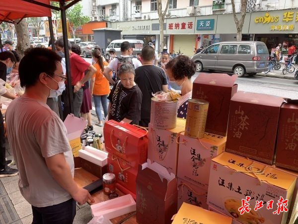 “罐装土鸡汤小火烧沸腾就可以食用了,味道特别纯正、操作特别简便。”汪集街绿合缘泰合作社销售人员陶翔正忙着给居民科普土鸡汤的做法。合作社现场售卖汪集土鸡汤、龙丘豆丝、古法红糖、桃胶和山茶油等老字号、特色农副产品,现场打7.8折,引来市民争相购买。为了参加这次“农夫市集”,他们一大清早装满整辆面包车就直奔现场。“感觉‘农夫市集’一届更比一届好。”他感慨,在武汉疫后重振的关键时刻,活动对提高农副产品知名度、推动产品销售大有好处。