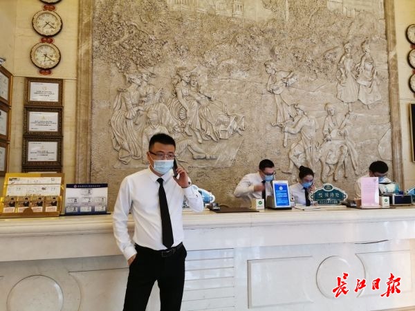 北京一家酒店前台接受湖北客人咨询,欢迎湖北人入住。 驻京记者柯立 摄