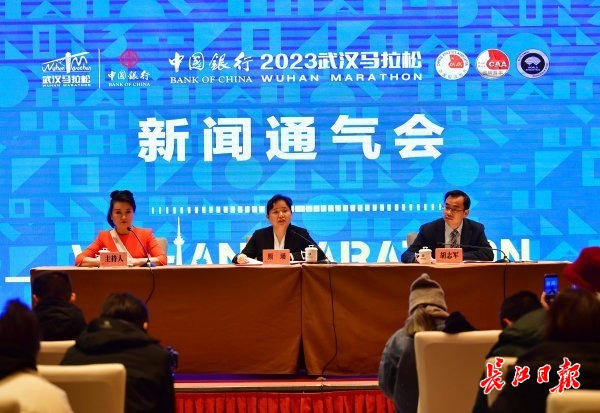 武汉马拉松组委会举行通气会现场。长江日报记者喻志勇 摄