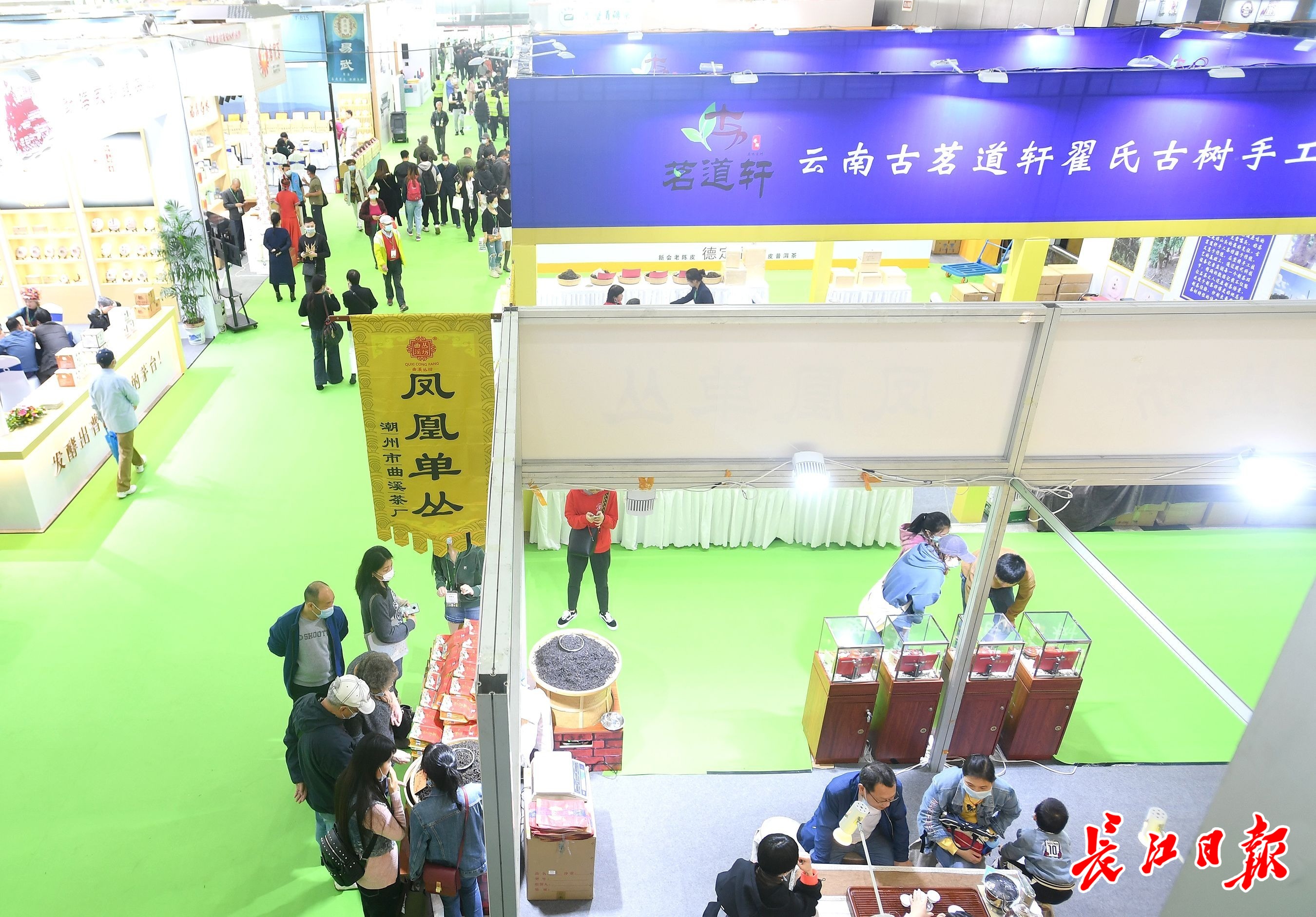 长江日报-长江网10月22日讯 2020年10月22日上午,第九届武汉茶博会在武汉国际会展中心开幕,本届茶博会规划了全国名茶区、黑茶/普洱茶区、白茶区、茶器美学区、紫砂区、茶具区六大展区,展览展品多达数十万件。全国600余家品牌茶企厂商带来了全品类茶叶,让武汉茶友在家门口品尝到各类名茶。茶博会将于25日闭幕。