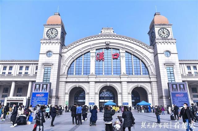汉口火车站站前广场,人流量增大。