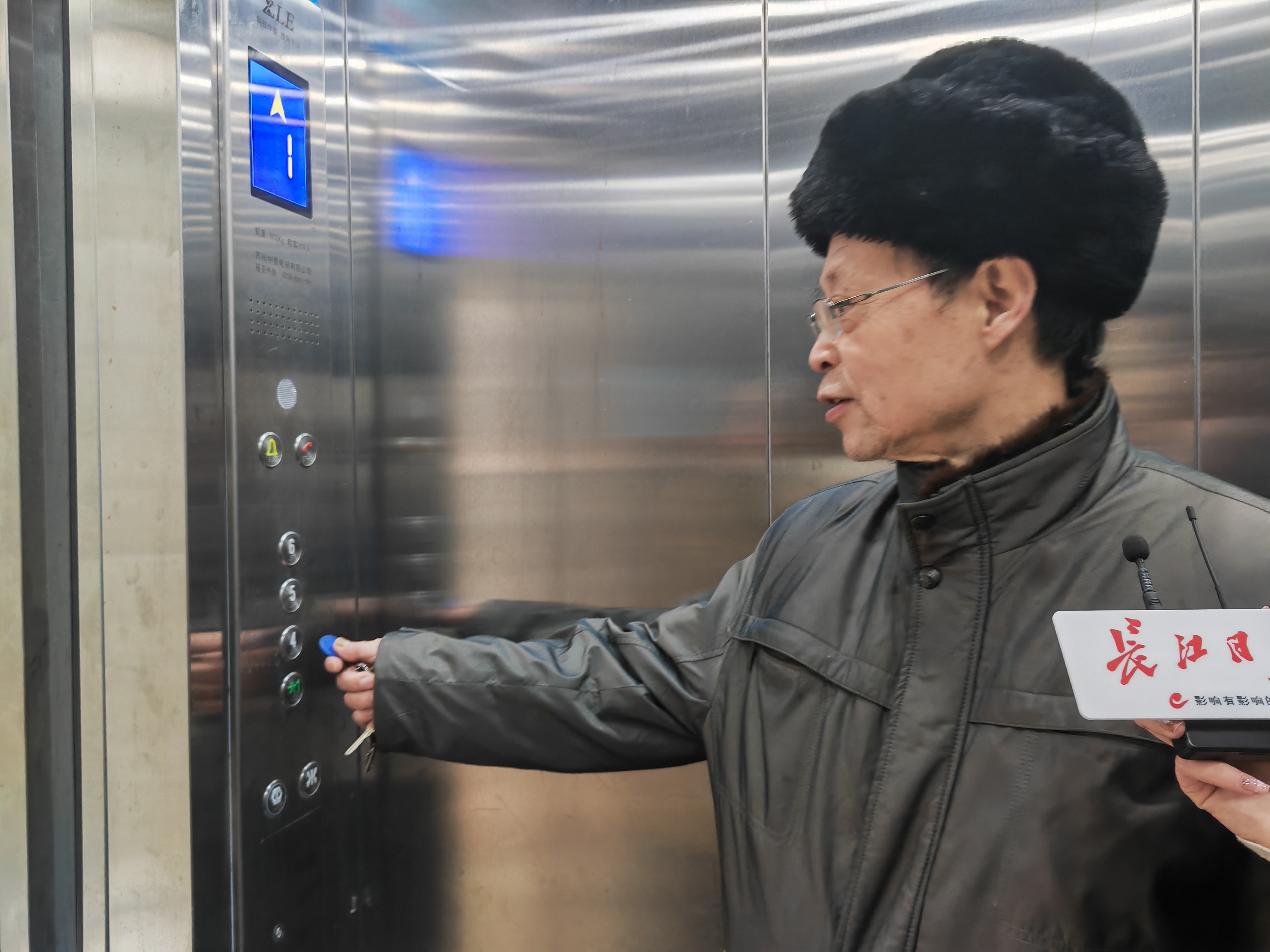 居民带领记者体验电梯。