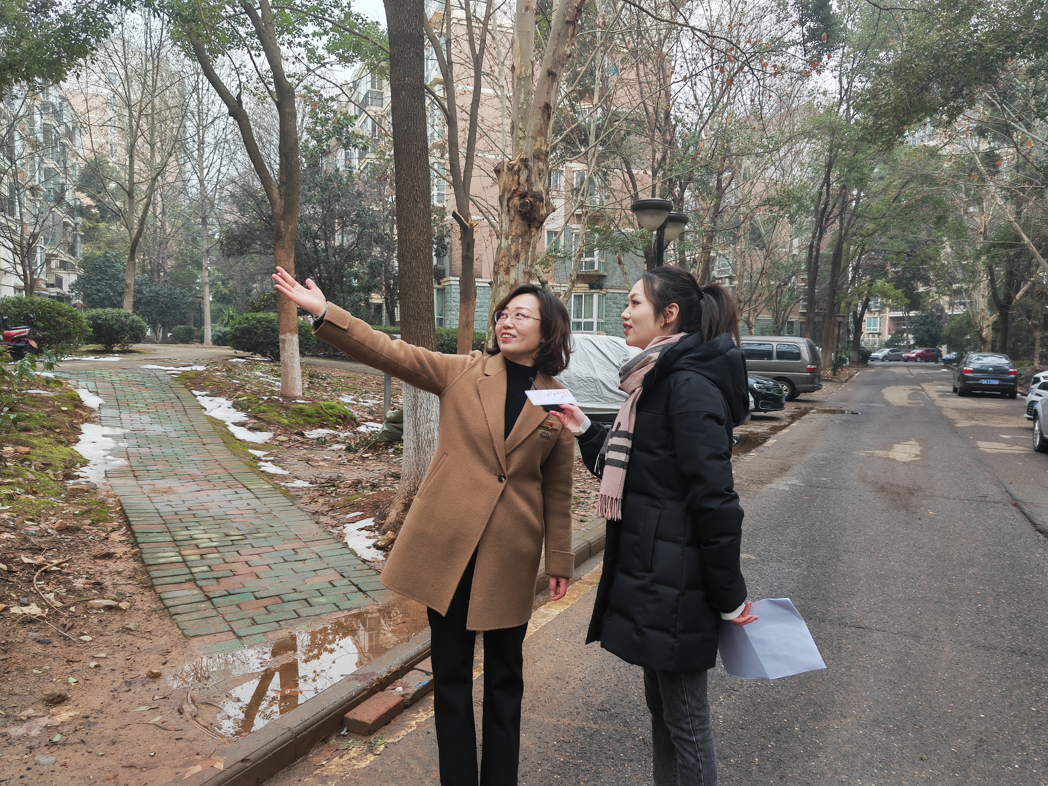 江大园社区书记黄艳正在向记者介绍社区情况。