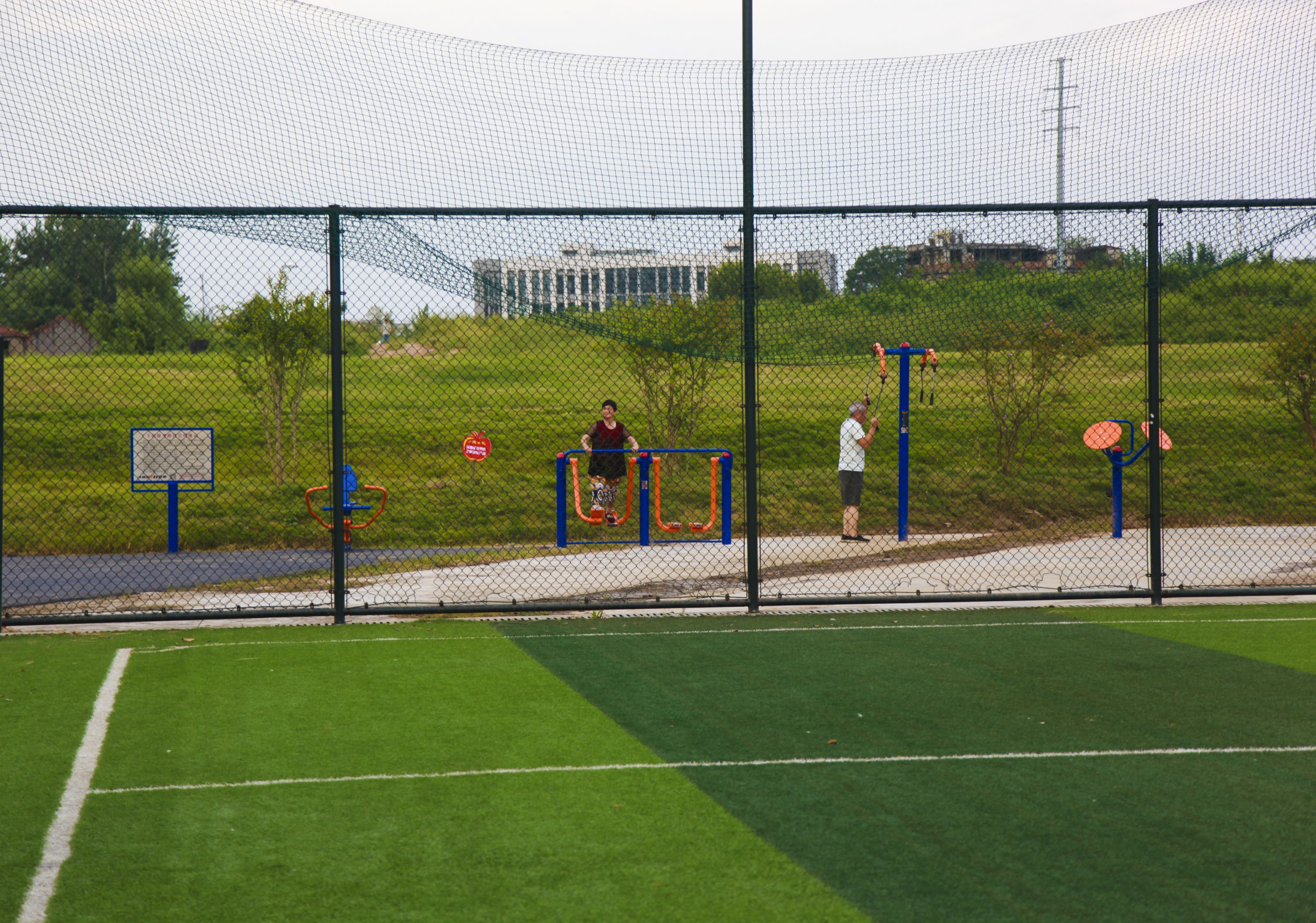 这片1.3万平方米的区域原是棚户区改造拆迁后被收储的地块,曾土块遍布、坑洼起伏。去年底,改造初步完成,变得绿树草坪环绕,水泥步道蜿蜒,足球场、篮球场、健身设施齐全。