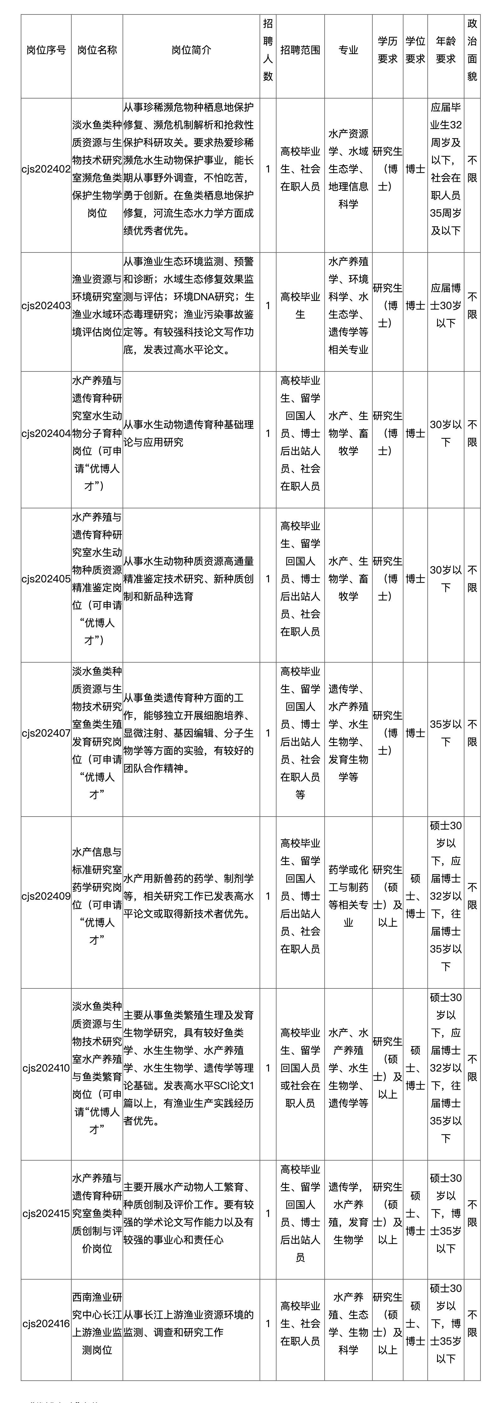 其中水产生物技术、水产遗传育种、水产养殖、水产病害防治等学科领域相关岗位可申请“优博人才”岗位。(具体条件及待遇见附件3)