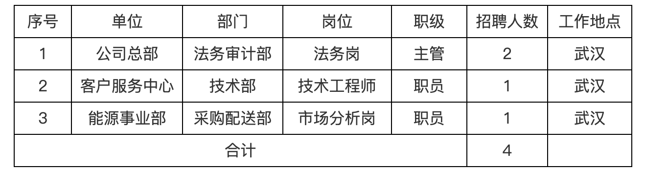 据湖北交投实业发展有限公司官网消息,该司面向社会公开招聘法务岗、技术工程师、市场分析岗共计4名管理人员。